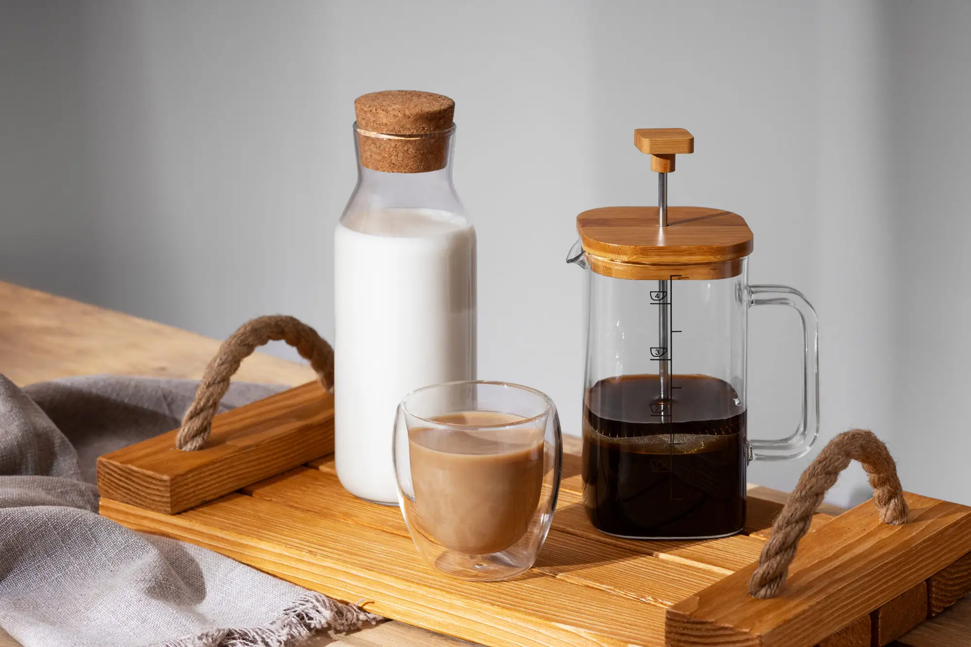 Nie wszyscy wiedzą, ale French Press wspaniale sprawdza się jako domowy spieniacz mleka. Ciepłe mleko (w okolicy 60 stopni C) wlewamy do karafki, wkładamy tłok i poruszamy nim energicznie w dół i w górę. W zależności od ilości mleka oraz szybkości ruchów nasze mleko będzie miało więcej albo mniej bąbelków powietrza. Jednak jego konsystencja w zupełności wystarczy, aby przygotować domowe latte lub cappuccino.